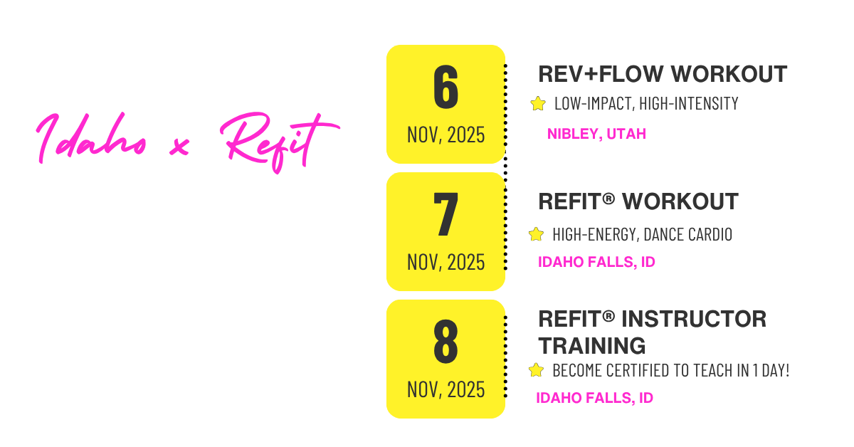 Join us for a 1-day REFIT® Instructor Training that’s inspiring, practical, and designed for everyone. You’ll learn everything you need to lead your own REFIT classes with confidence and heart. No fitness or dance background required. Come ready to move, connect, and step into something new!